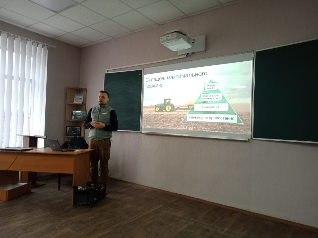 Під час тренінгу здобувачі освіти дізналися про основи точного висіву, які є ключовими для підвищення врожайності; принципи формування борозни, які впливають на рівномірність посіву та розвиток рослин; сучасні технологічні тренди, що змінюють підходи до сільськогосподарського виробництва.